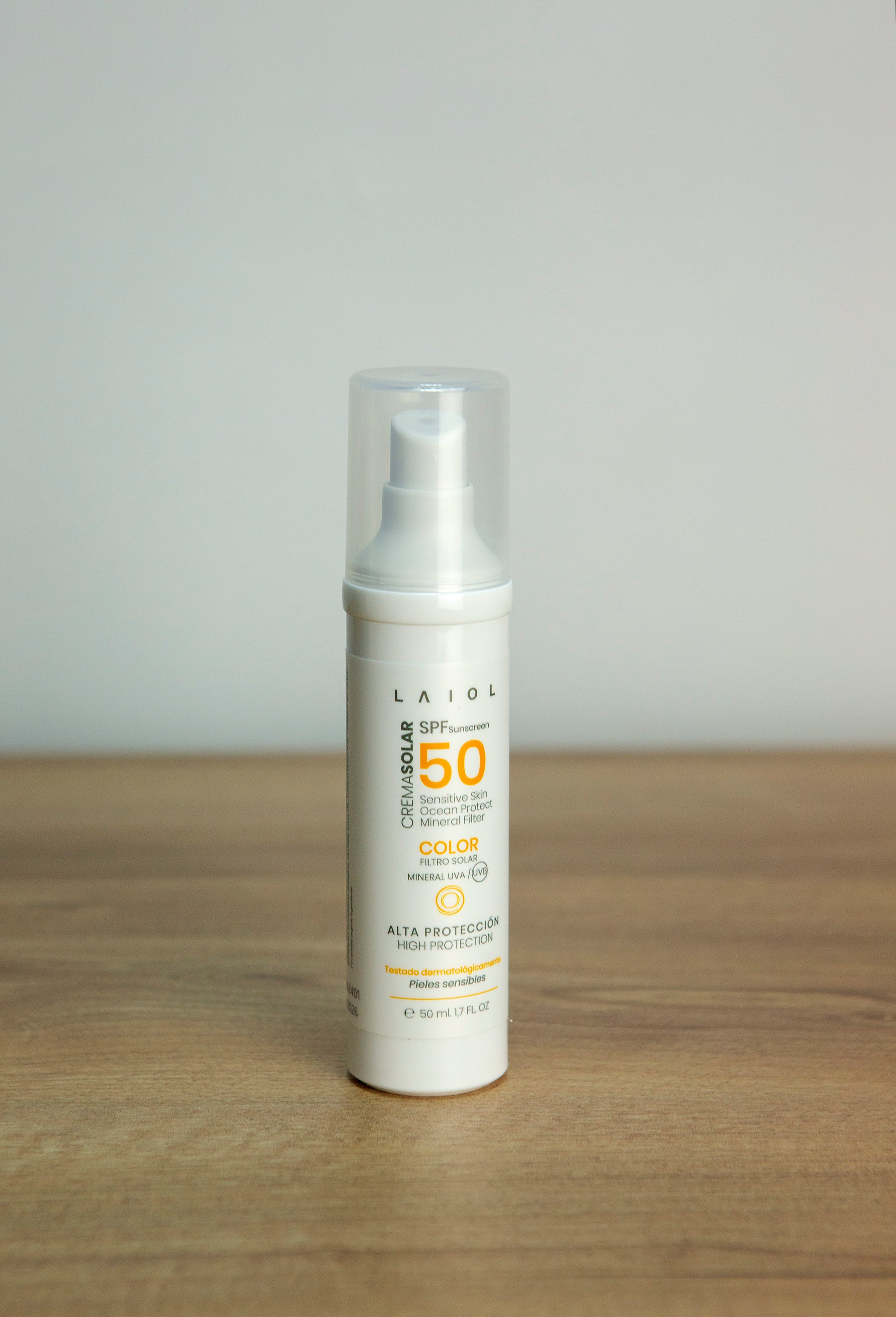 Crema solar facial SPF50 alta protección testada para pieles sensibles con filtros minerales vegana, biodegradable